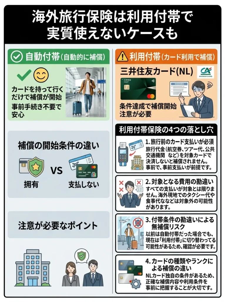 5. 海外旅行保険は利用付帯で実質使えないケースも