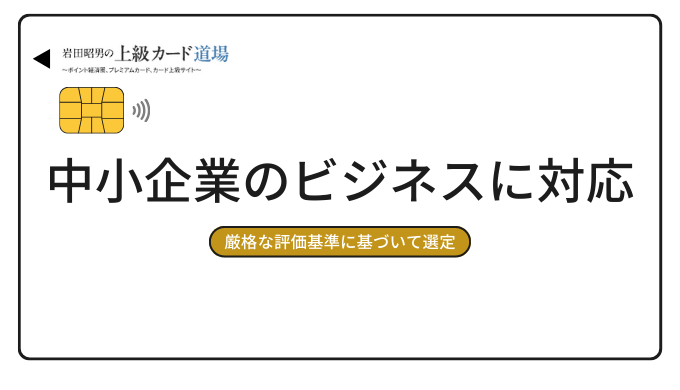 厳格な評価基準に基づいて選定された、法人カード最強の2枚をご紹介します。この2枚があれば、中小企業のあらゆるビジネスシーンに対応可能です。