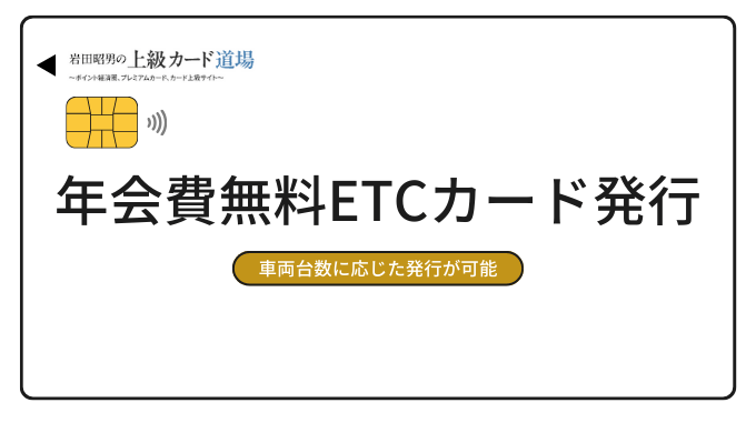 ETCカード発行 | 年会費無料で複数枚発行可能(車両台数に応じて発行可) | ETCカード発行可(発行条件あり) |