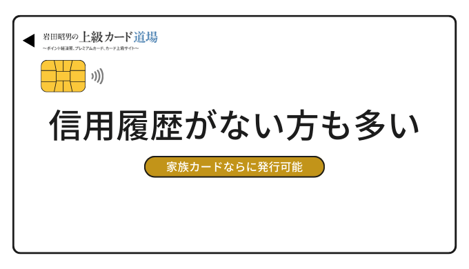 スーパーホワイト状態の高齢者でも、家族カードなら比較的簡単に発行することができます。家族カードは本会員の信用力に基づいて発行されるため、家族カード利用者自身の信用情報は審査対象となりません。これは、クレジットカードを初めて持つ高齢者にとって非常に有効な選択肢です。