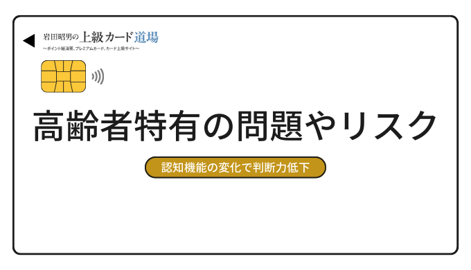 80歳代の高齢者がクレジットカードを利用する際には、若い世代では考えにくい特有の問題やリスクが存在します。これらの問題を事前に理解し、適切な対策を講じることで、安全で快適なクレジットカードライフを送ることができます。