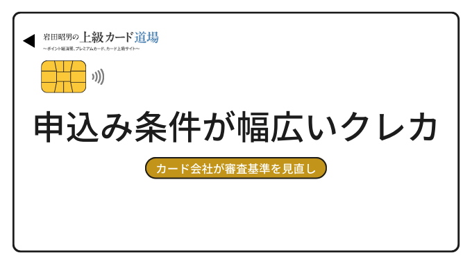 A. 流通系(イオン・楽天など)、消費者金融系、審査基準が独自のカードが比較的申込み条件が幅広いとされています。